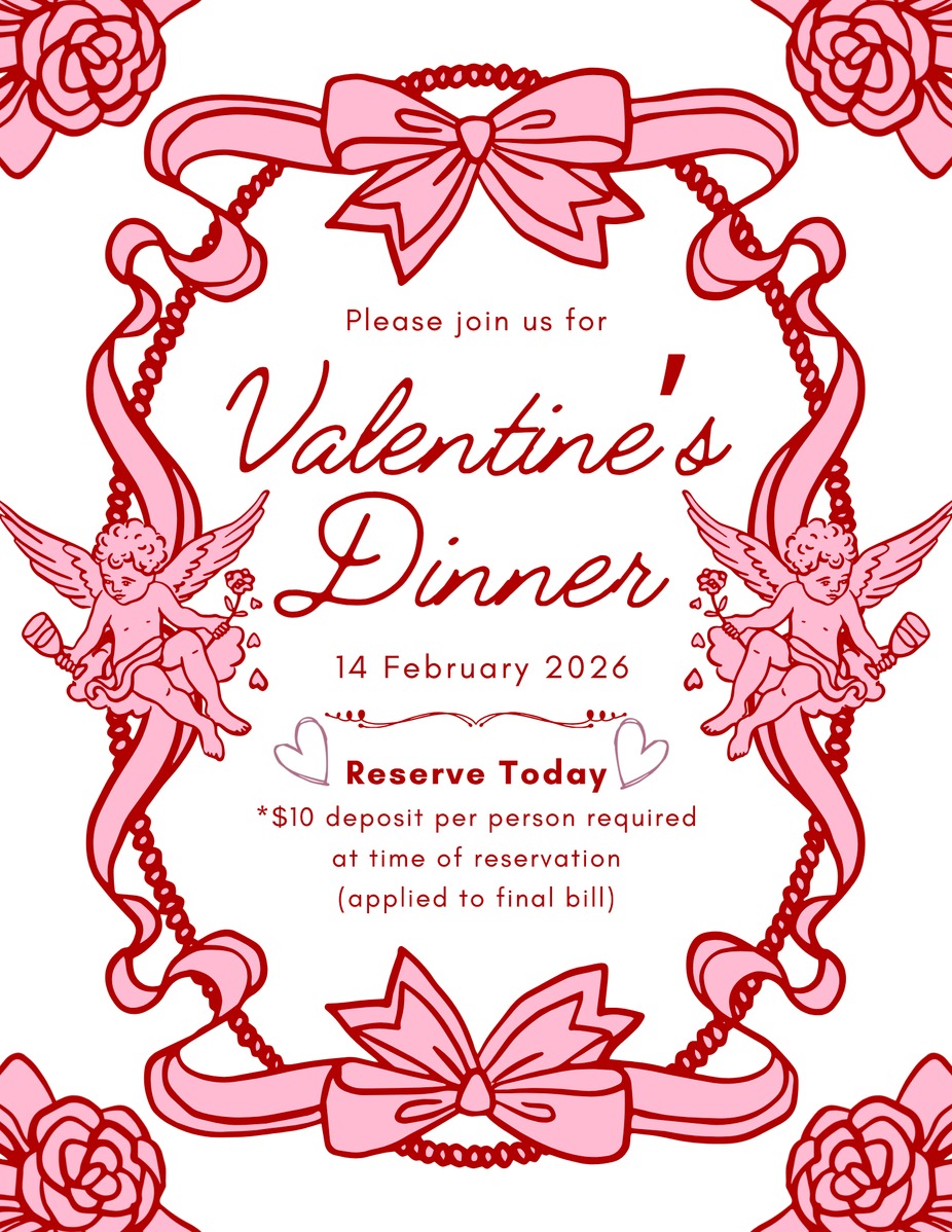 Join us on Valentine's Day for the perfect romantic evening! 2.14.2026 Open 4pm - 10pm